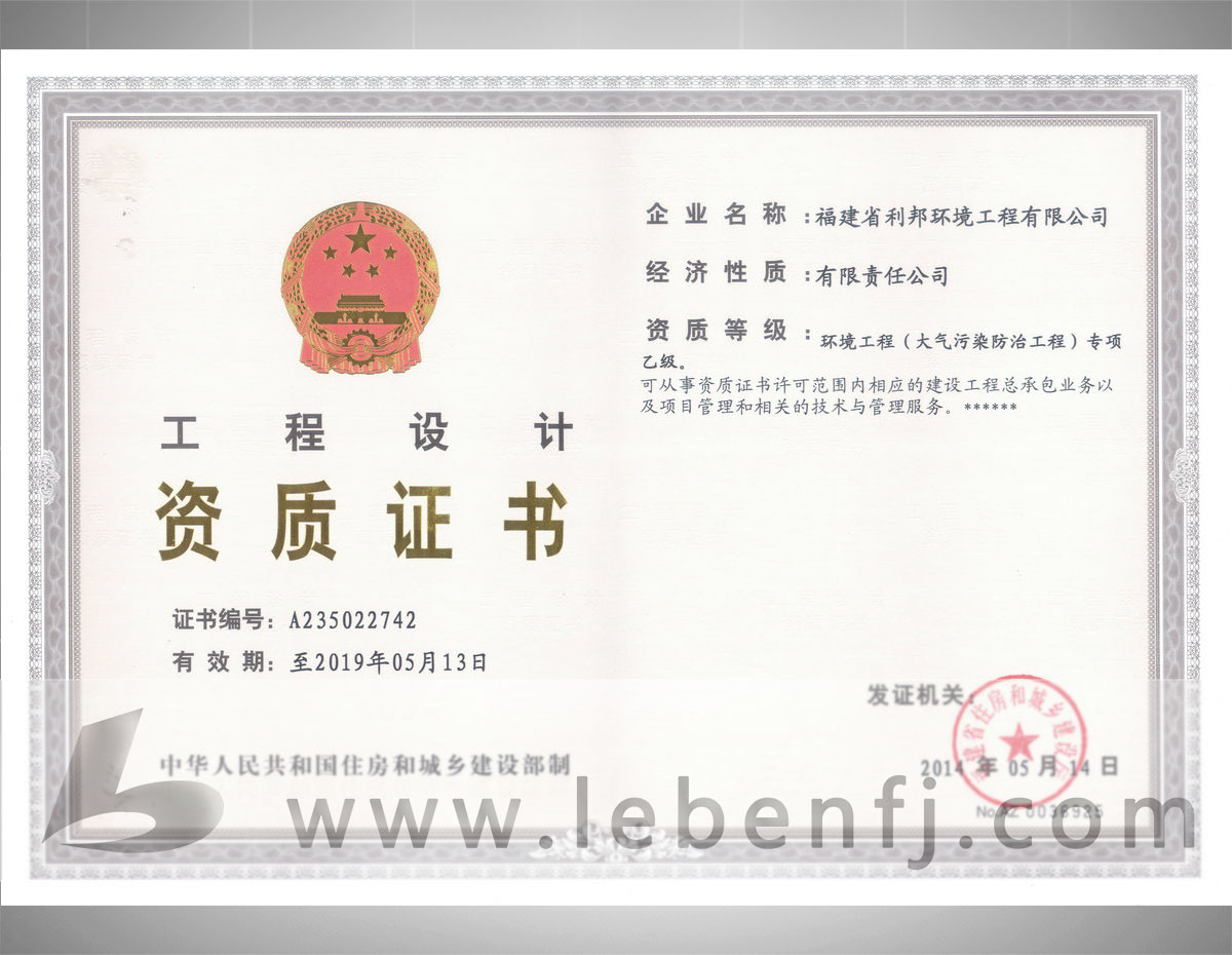 环境工程设计专项资质(乙级)